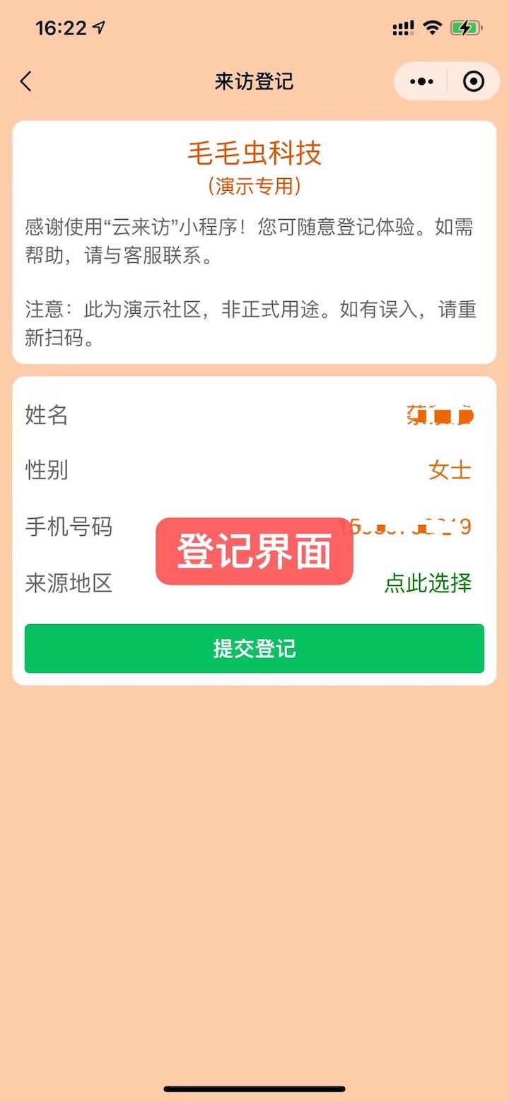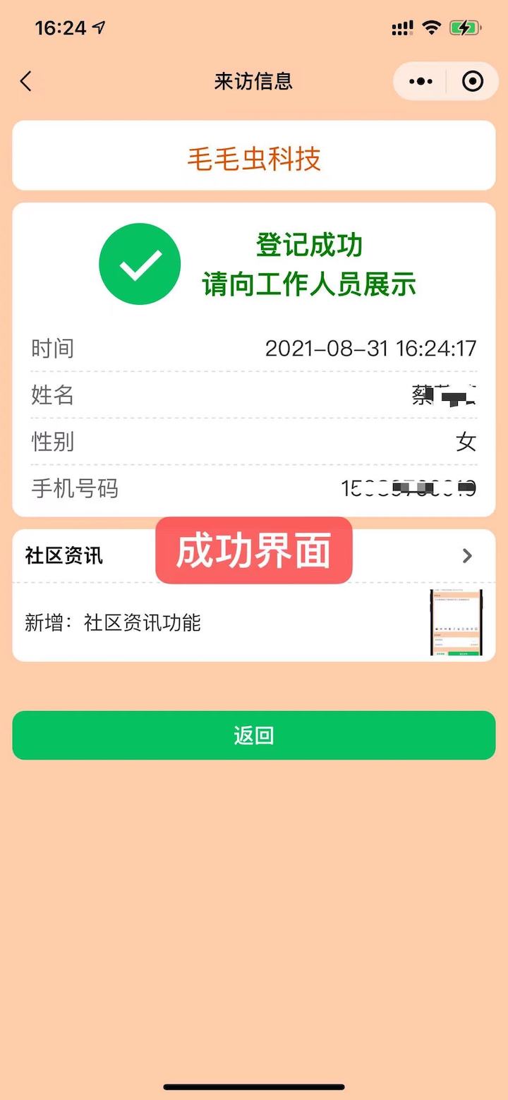 访客登记成功时展示 信息直达访客面前